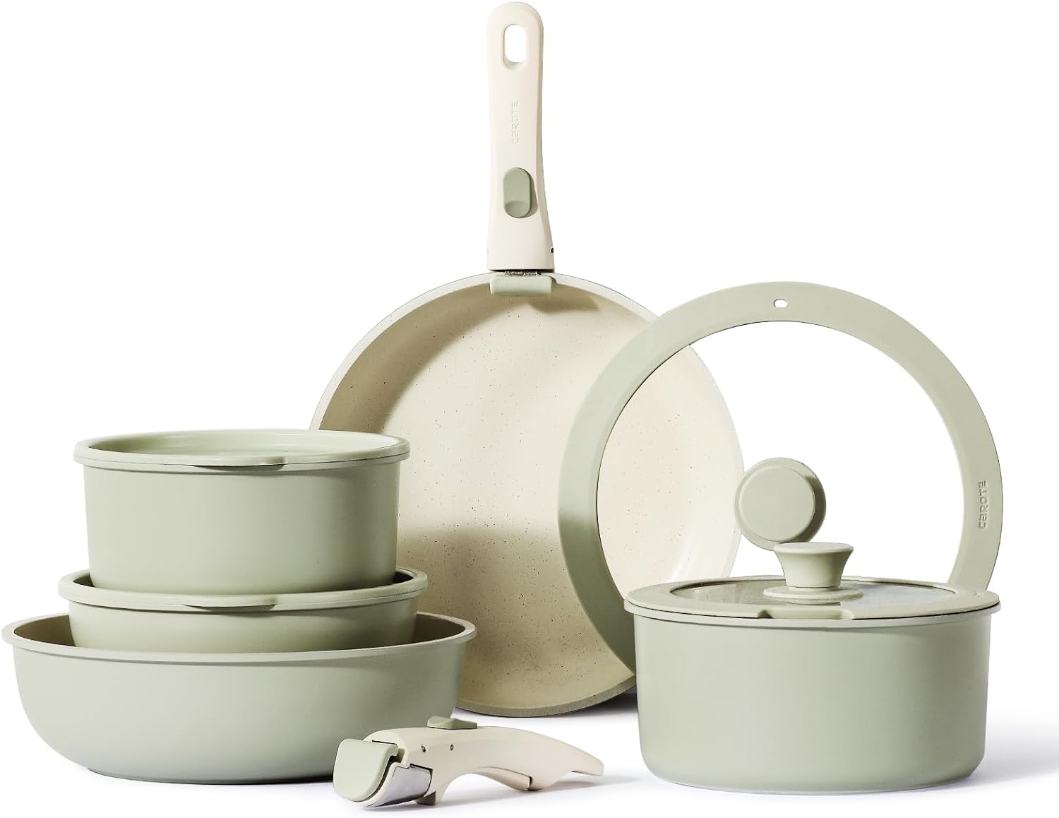 Descripción: Maximiza el espacio en tu cocina con el juego de utensilios de cocina CAROTE, que ofrece un diseño antiadherente de granito y mangos extraíbles para una versatilidad excepcional en cocción y almacenamiento.
